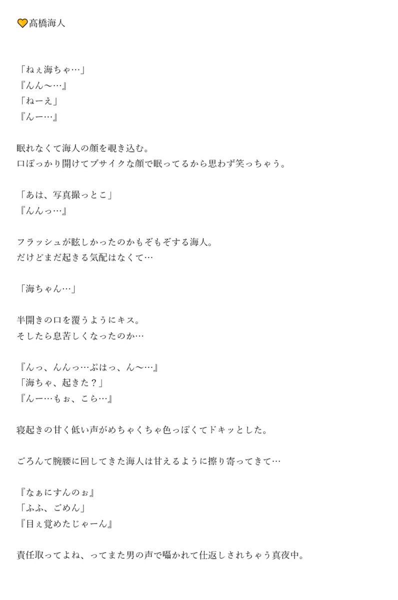じぐいわ∣神宮寺勇太×岩橋玄樹 1,515 likes じぐいわが大好き♥ 神宮寺勇太×岩橋玄樹の(非公式)ファンページです☆ 一緒に彼らを応援してあげてね♪ じぐれん💗 じぐれんの甘々な一日を紹介! ! #King&Prince #永瀬廉 #神宮寺勇太 #甘々 #じぐれん 年08月04日 神宮寺💕 俺は永瀬廉 神宮寺勇太と付き合っていて同居している 神は 頬をうっすらピンクにして走って楽屋を 出ていった。 「じん、えーなー。デートかあ? 優太、おれらも飯いこうや!」 廉の声に振り返ると、廉の隣にいる岸くんと 目があった。 岸くんはにっこりと笑って、 「そーだな!おれらもデートすっかっ。」 そう、返事した。 ブログトップ;激